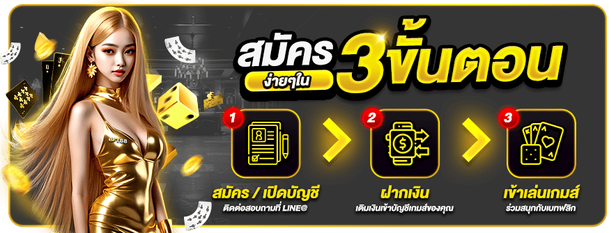 ตอบ : - สมัครผ่านหน้าเว็บไซต์หรือไลน์แอด กรอกข้อมูลส่วนตัวและบัญชีธนาคาร รอรับ username/password ใช้เวลาไม่เกิน 3 นาที